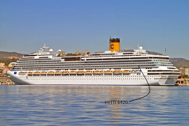Kulkupelinä oli Costa Serena (kuva: merchantships.info), surullisenkuuluisan Costa Concordian sisaralus. Oletan, että Giglion saari Toscanan rannikolla Italiassa ohitettiin mahdolisimman kaukaa ja mahdollisimman nopeasti, hylky oli juuri muutamaa viikoa aiemmin nostettu pystyyn, mutta odotti vielä poishinausta - ja odottaa edelleen kevääseen 2014.